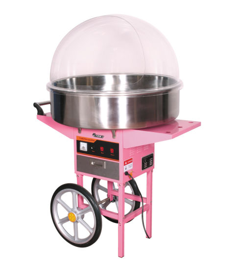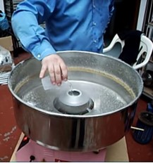 Aunque la máquina ha avanzado con la tecnología, su funcionamiento es básico: al igual que en los parques de atracciones, el truco está en usar la fuerza centrífuga. El azúcar y el colorante se ponen en el centro de la máquina, donde hay un pequeño depósito con un motor que lo hace rotar a gran velocidad y una fuente de calor que a su vez irá derritiendo el contenido. Después, gracias a la fuerza centrífuga, el líquido se filtra por unos pequeños agujeros que hay a los lados. Cuando el azúcar entra en contacto con el aire se solidifica, provocando que se formen unos hilos muy finos (llamado “seda de hadas”) que nos recuerdan al algodón. El usuario entonces los junta alrededor de un palo o cono de papel y nos hace entrega del delicioso manjar.